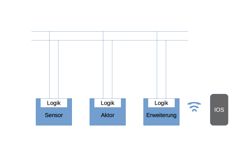 Ich kann „intelligente“ Sensoren und Aktoren einsetzen, die viele Befehle über komplizierte Kommunikationswege und Protokolle unterstützen? Wenn ich alle Information allen Teilnehmern zur Verfügung stelle und direkt bei den Teilnehmern auswerte brauche ich keine zentrale Steuereinheit?